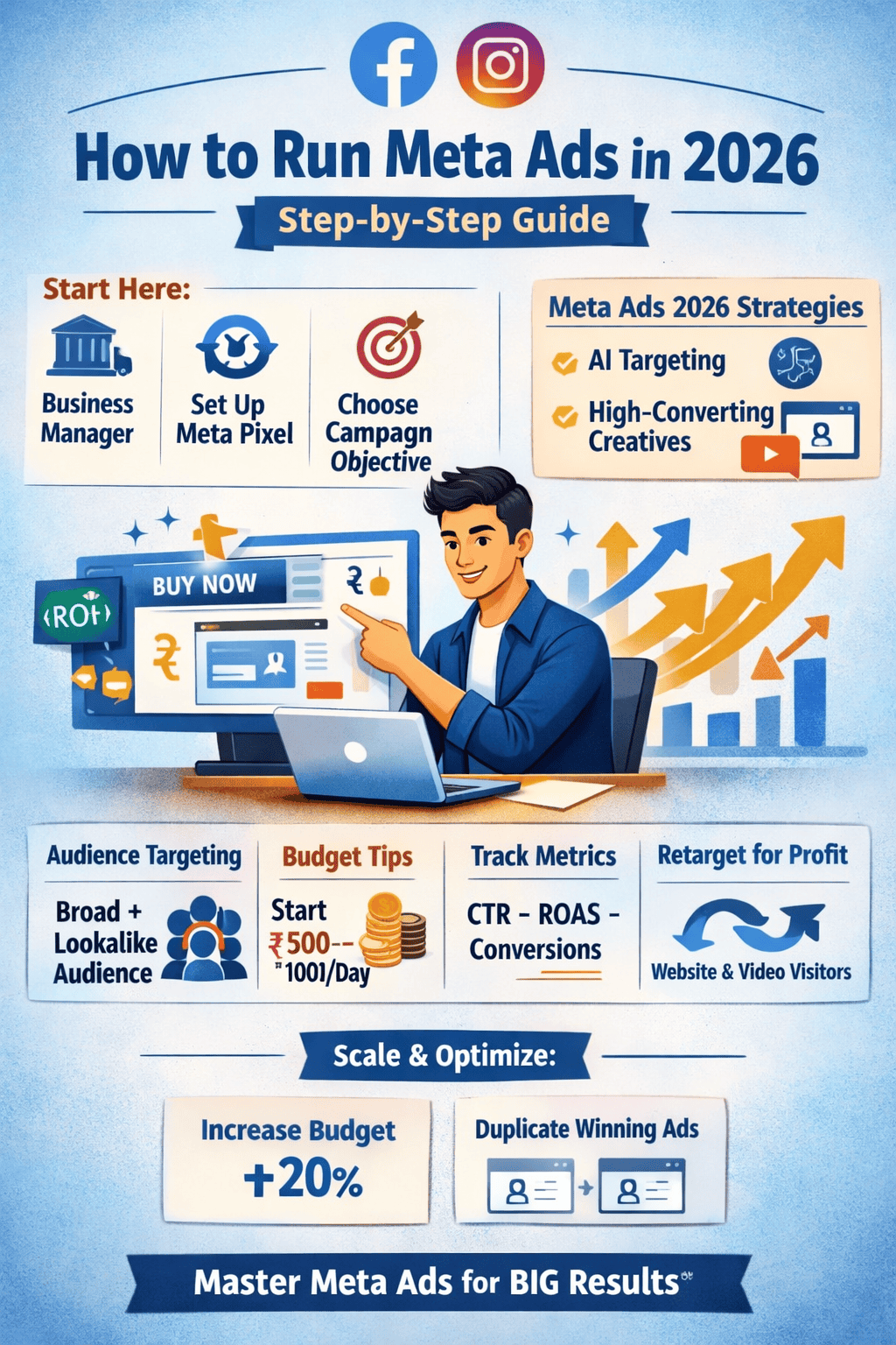 Learn how to run Meta Ads in 2026 with this step-by-step beginner-friendly guide. Discover targeting strategies, AI optimization tips, budget scaling methods, and proven ad creatives to increase conversions and ROI.